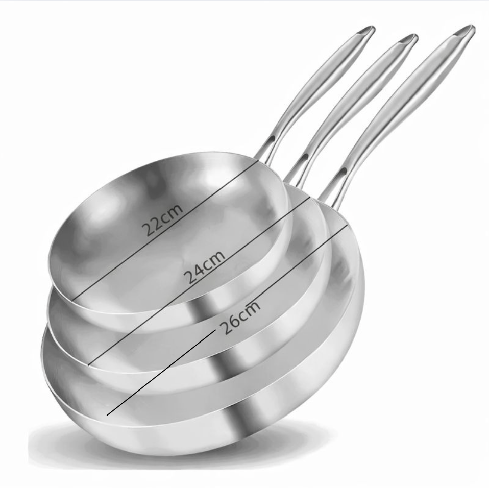 Trio de Poêles en Inox – 22 / 24 / 26 cm